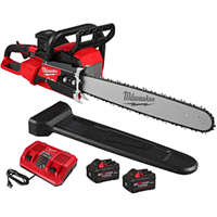 Includes: M18 FUEL Dual Battery Chainsaw (2827-22), (2) REDLITHIUM FORGE XC8.0 Batteries (48-11-1881), M18 Simultaneous Dual Bay Rapid Charger (48-59-1802), Scabbard, and Scrench