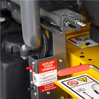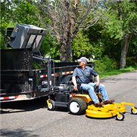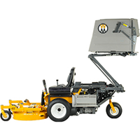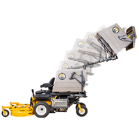 The Walker Hi-Dump® raises up 67 inches and dumps collected grass and debris into a truck or trailer with a 20-second cycle time. Powered by a 12-volt electric/hydraulic system, the lifting and dumping functions work independently and are controlled by two toggle switches near the operator's seat.